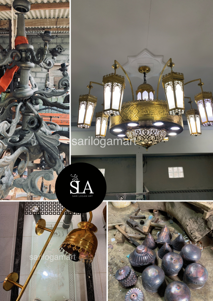 - Lampu Gantung & Lampu Masjid – Menyediakan penerangan sekaligus karya seni yang menghadirkan nuansa hangat dan elegan.